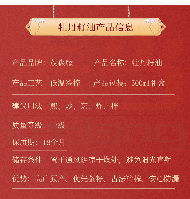 牡丹籽油 500ml×1瓶(禮盒裝)一級(jí)